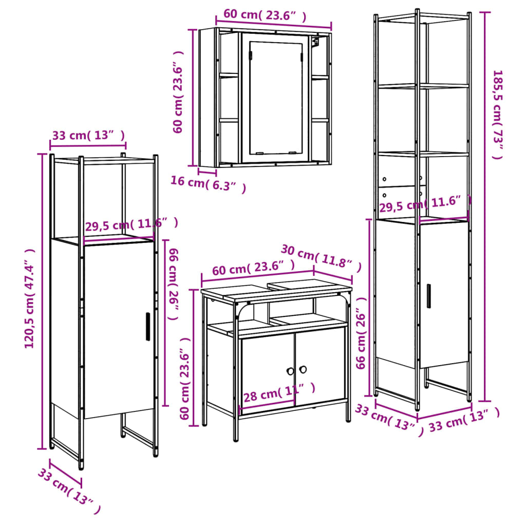 vidaXL 4 Piece Bathroom Cabinet Set Black Engineered Wood